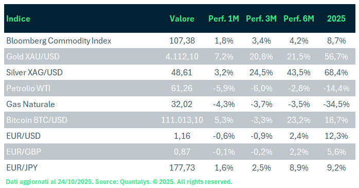 © 2025 Quantalys. Tutti i diritti riservati. Le informazioni fornite sono di proprietà di Quantalys Italia Harvest Group; possono non essere esaustive e non costituiscono raccomandazione o sollecitazione all’investimento. Quantalys Italia Harvest Group non si assume alcuna responsabilità per le eventuali conseguenze derivanti da decisioni assunte o iniziative intraprese sulla base delle informazioni riportate nel presente documento. Tutti i dati sono aggiornati alla data indicata e attribuiti a Quantalys Italia Harvest Group, salvo diversa indicazione.
