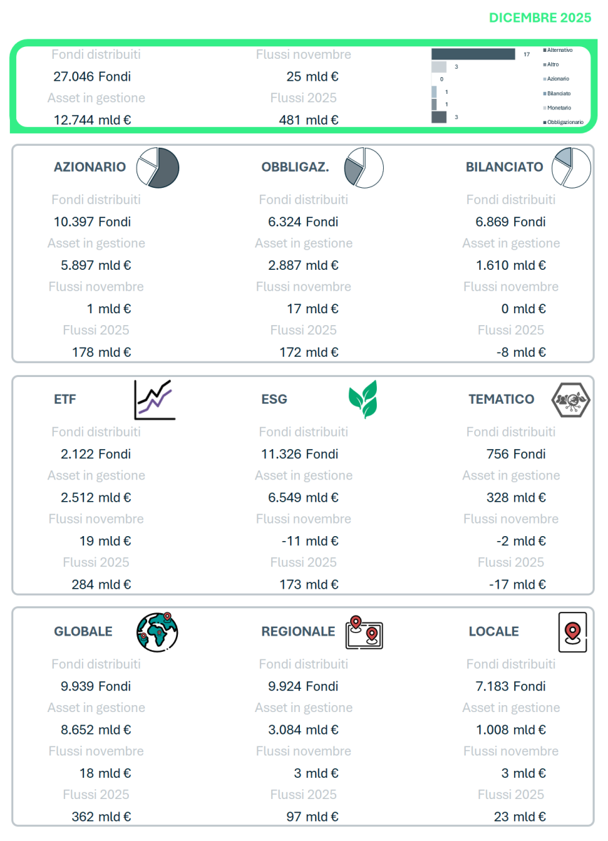 © 2025 Quantalys. Tutti i diritti riservati. Le informazioni fornite sono di proprietà di Quantalys Italia Harvest Group; possono non essere esaustive e non costituiscono raccomandazione o sollecitazione all’investimento. Quantalys Italia Harvest Group non si assume alcuna responsabilità per le eventuali conseguenze derivanti da decisioni assunte o iniziative intraprese sulla base delle informazioni riportate nel presente documento. Tutti i dati sono aggiornati alla data indicata e attribuiti a Quantalys Italia Harvest Group, salvo diversa indicazione.