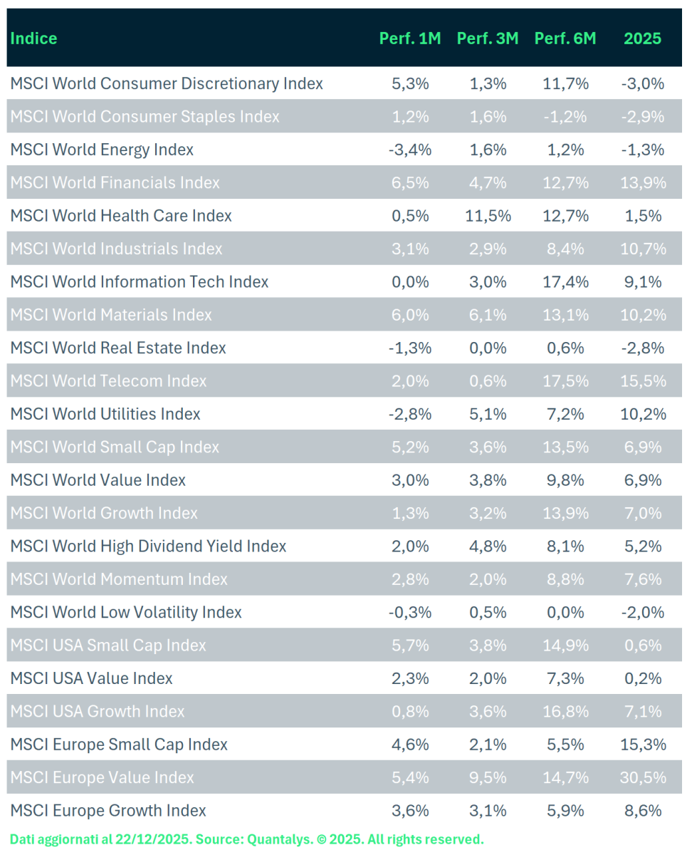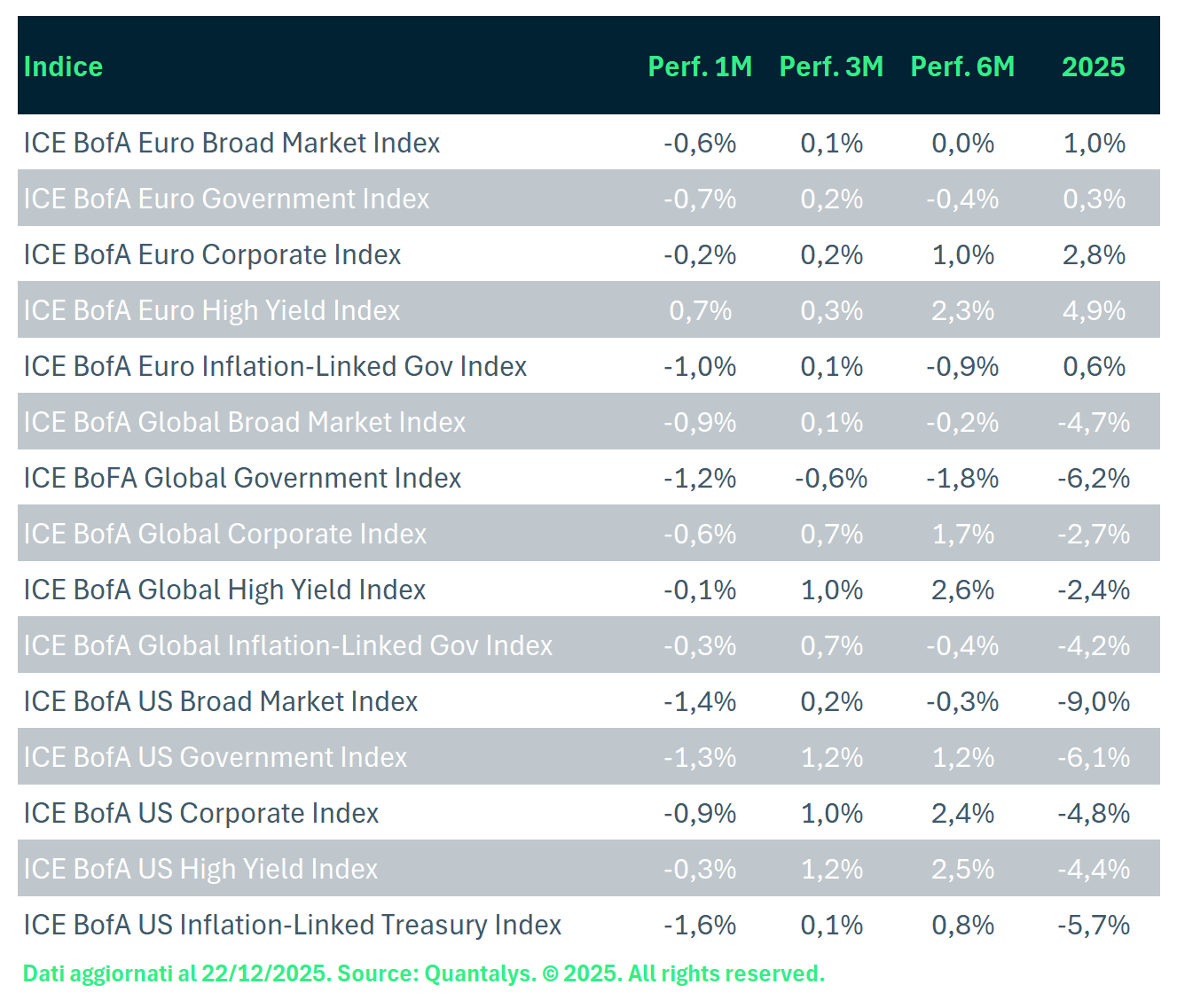 © 2025 Quantalys. Tutti i diritti riservati. Le informazioni fornite sono di proprietà di Quantalys Italia Harvest Group; possono non essere esaustive e non costituiscono raccomandazione o sollecitazione all’investimento. Quantalys Italia Harvest Group non si assume alcuna responsabilità per le eventuali conseguenze derivanti da decisioni assunte o iniziative intraprese sulla base delle informazioni riportate nel presente documento. Tutti i dati sono aggiornati alla data indicata e attribuiti a Quantalys Italia Harvest Group, salvo diversa indicazione.