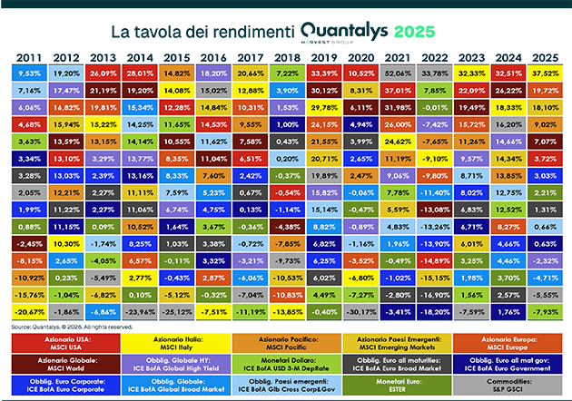 La tavola dei rendimenti Quantalys 2025